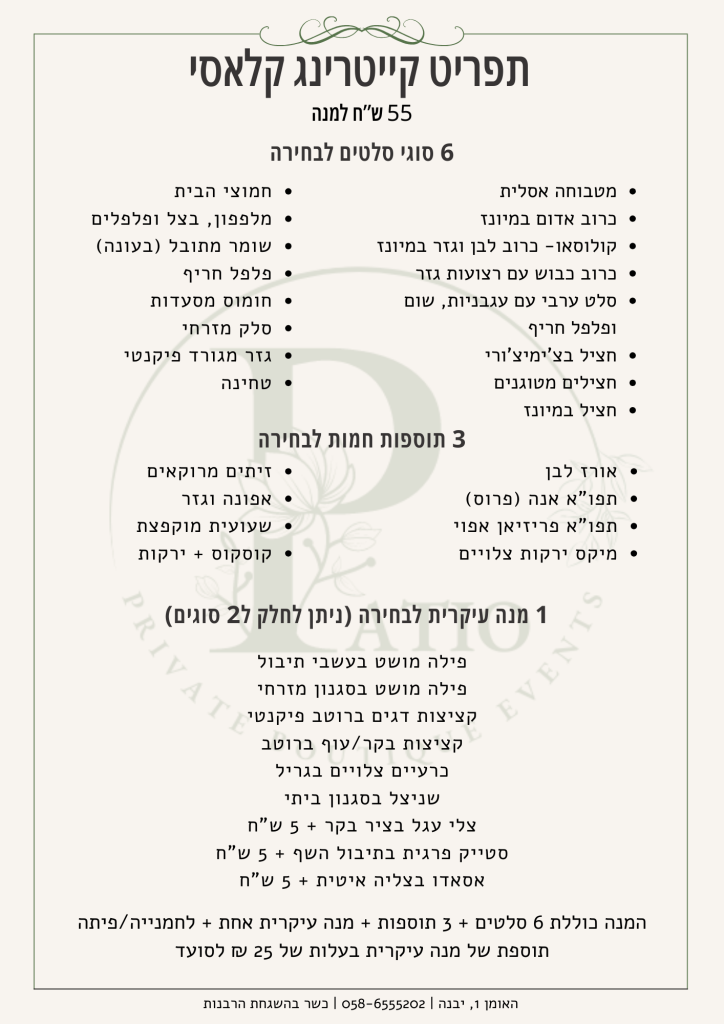תפריט קייטרינג קלאסי